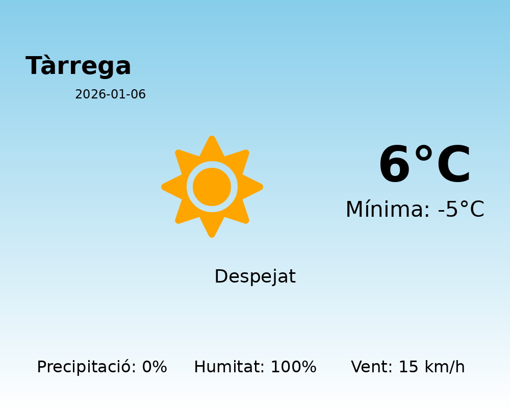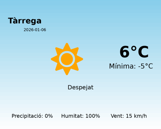 Predicció del Temps per a Tàrrega – 6 de gener de 2026