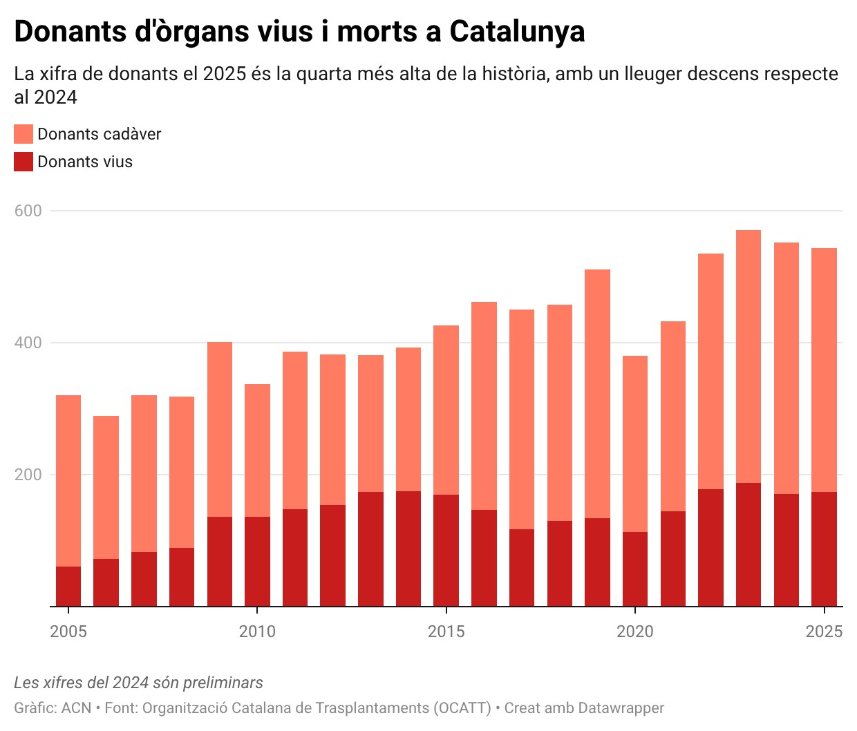 ACN Barcelona - Catalunya va fer 1.356 trasplantaments d'òrgans el 2025, un 0,8% més que…