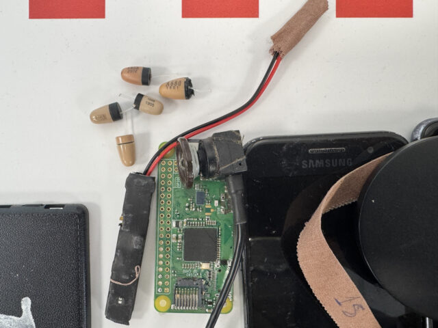 En total, els agents van detectar onze persones que utilitzaven un sistema de transmissió d’imatges i àudio. Aquest dispositiu estava format per una càmera oculta integrada a la roba, un emissor extern que enviava les imatges a un col·laborador, i un mini auricular imperceptible que transmetia les respostes a l’examinat.