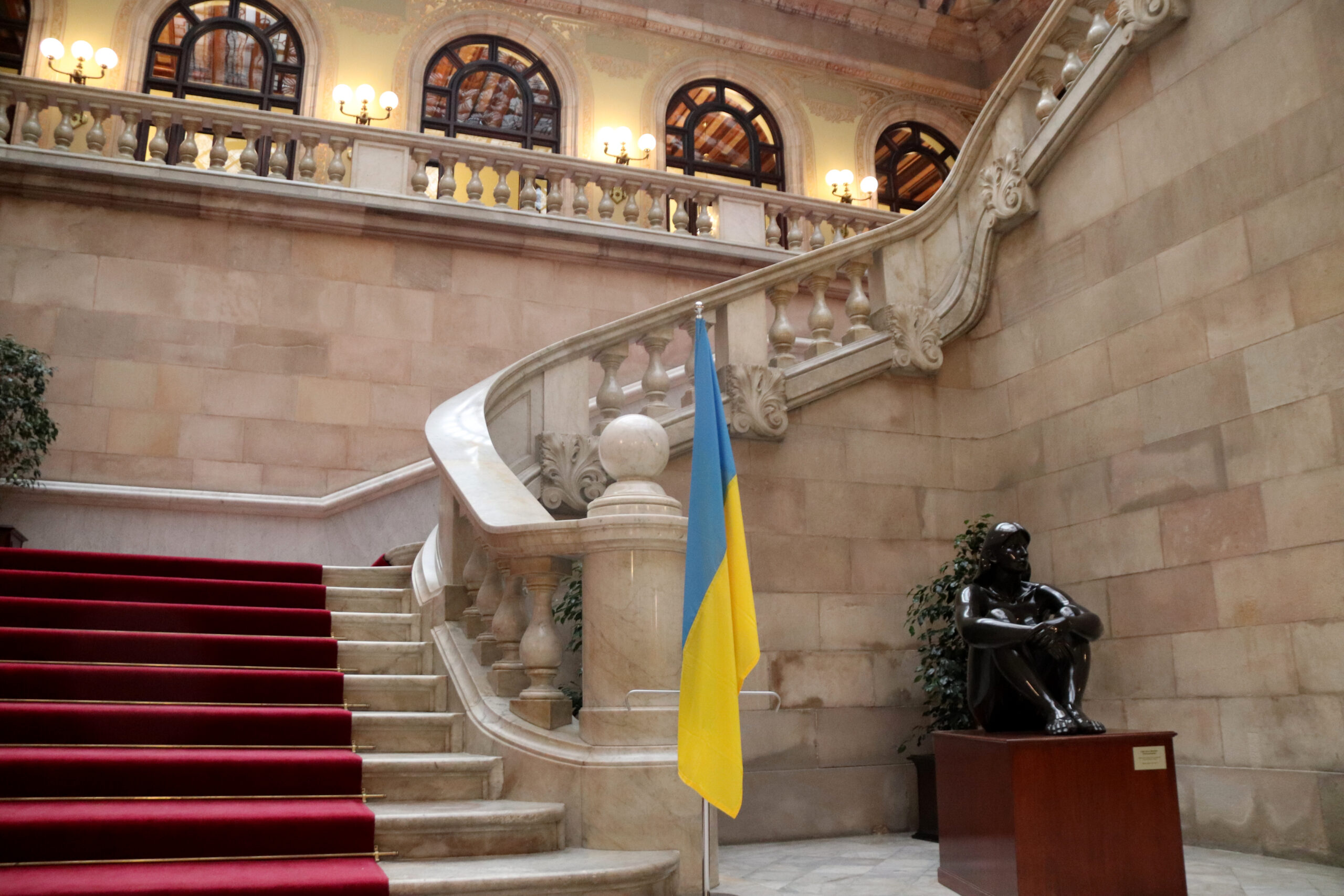 ACN Barcelona – El Parlament de Catalunya ha col·locat aquest dimarts la bandera d’Ucraïna al peu de l’escala d’honor amb motiu del quart aniversari de la invasió russa. L’anunci el va fer diumenge el president de la institució, Josep Rull, durant la cloenda de la manifestació de la comunitat ucraïnesa celebrada a Barcelona. El ple de la cambra d’aquesta setmana llegirà una declaració institucional de suport, com ja es va fer els anys 2024 i 2025. El Parlament ja va exhibir la bandera en el segon i el tercer aniversari del conflicte.