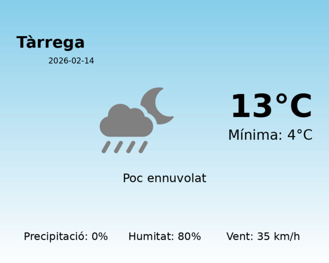 Predicció del Temps a Tàrrega per al 14 de febrer de 2026