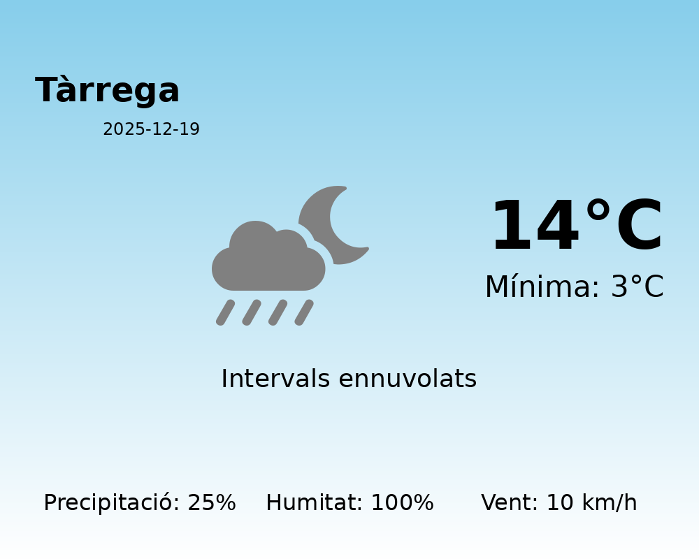 Predicció del Temps per a Tàrrega – 19 de Desembre de 2025