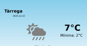 Previsió de l’AEMET a Tàrrega avui 22 de Desembre de 2025