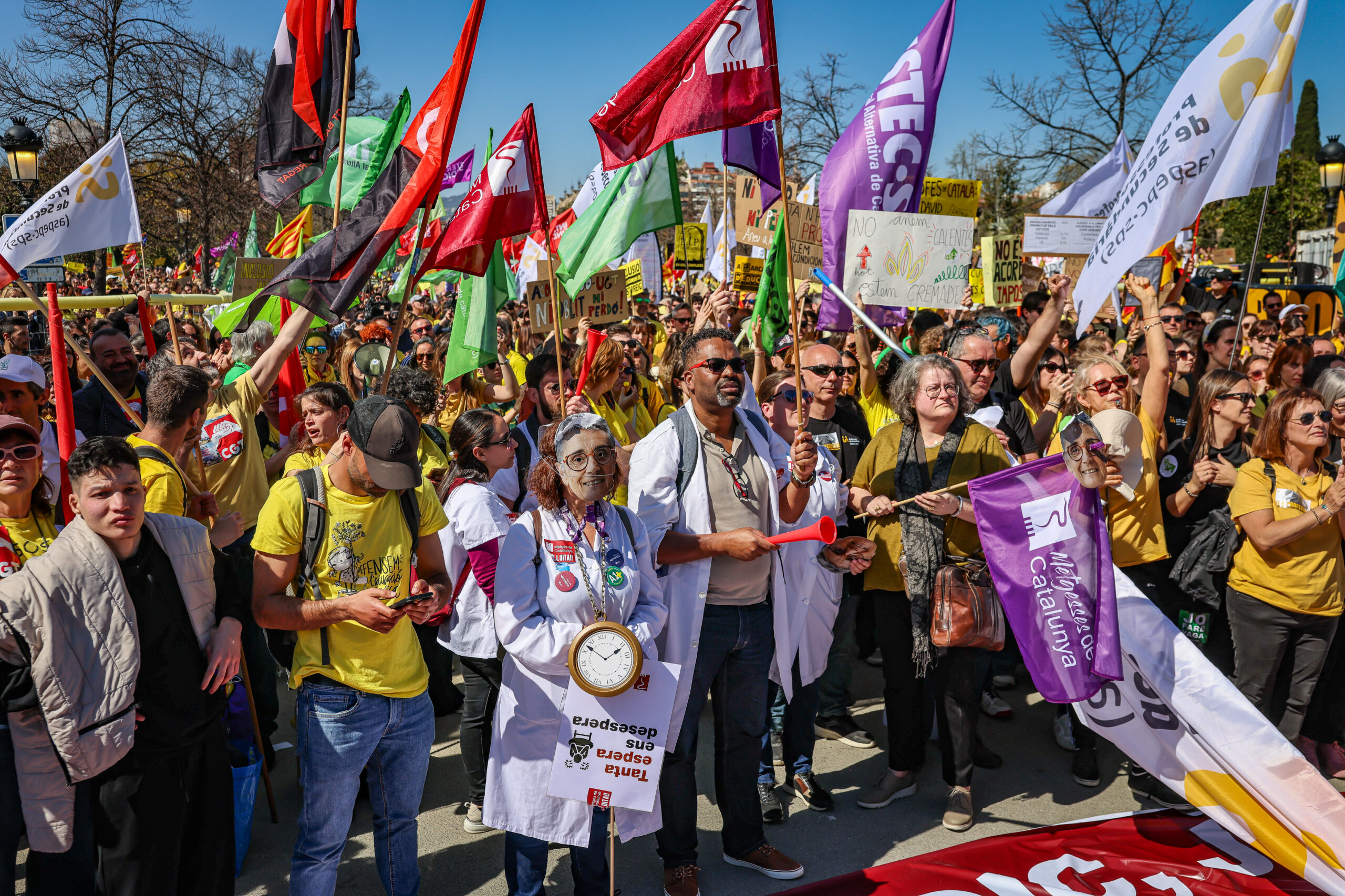 (La notícia s’actualitza amb el missatge enviat pels sindicats durant els discursos al Parc de la Ciutadella i per explicar el transcurs de la protesta fins a les portes del Parlament)