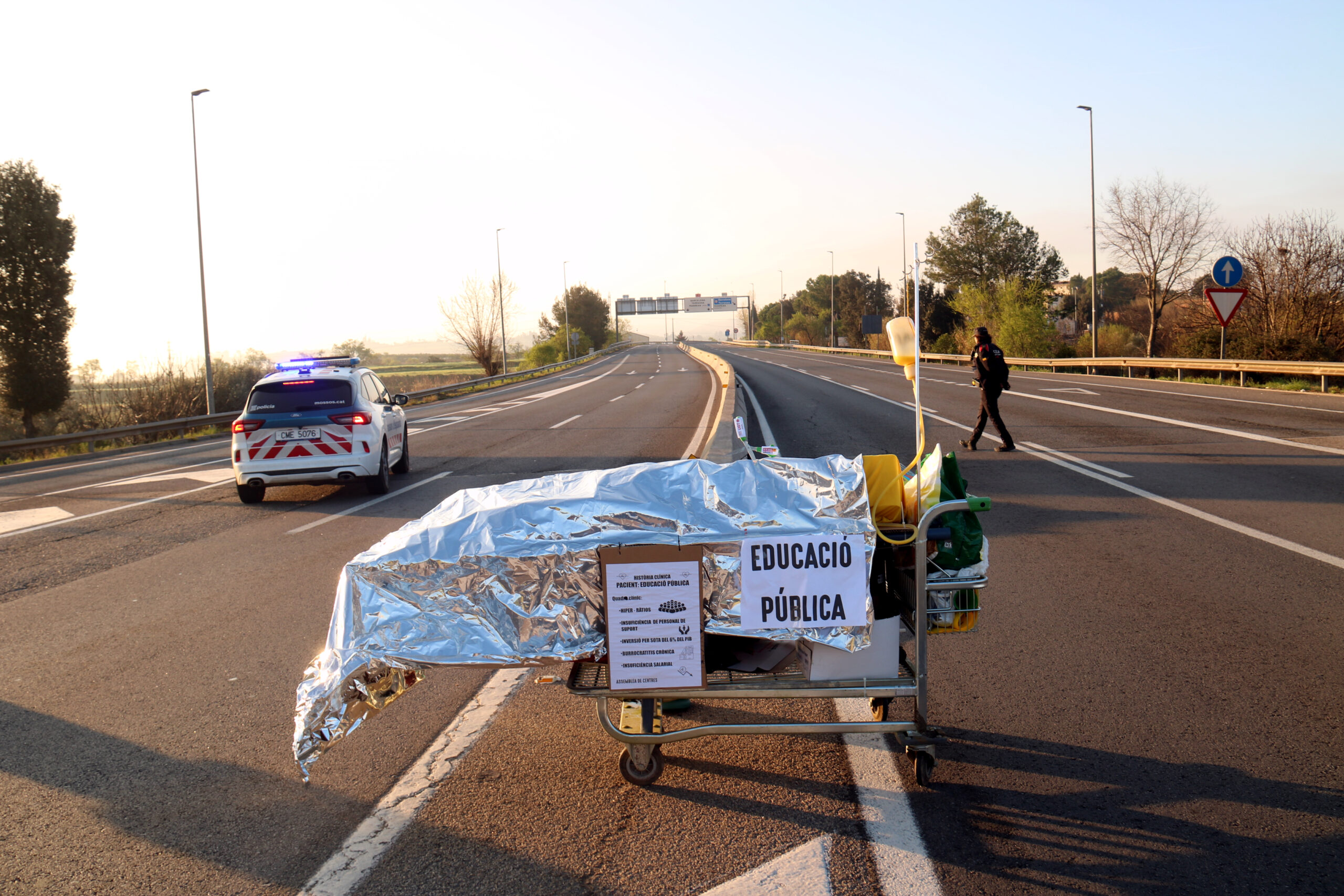 ACN Manresa – Els docents han tallat diverses carreteres a les comarques de Ponent i de la Catalunya Central aquest dimecres amb motiu del tercer dia de vaga. Avui estan cridats a l’aturada els professionals de Lleida, l’Alt Pirineu i l’Aran i de la Catalunya Central. Els primers talls s’han produït cap a les set del matí l’A-2 entre Lleida i Alpicat i a Soses, segons ha informat el Servei Català de Trànsit (SCT). A les 7.45 hores, unes 150 persones han tallat també la via a Alcarràs, primer només en sentit Barcelona i després en els dos sentits. Gairebé a la mateixa hora, un centenar llarg de docents ha tallat la C-55 a Manresa en els dos sentits. Altres vies on s’han fet talls són la C-16 a Berga, la C-59 a Moià i l’N-260 a la Seu d’Urgell.
