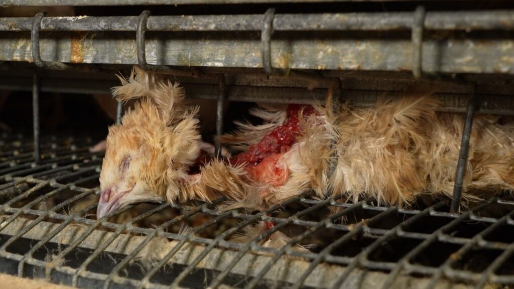 L’organització assegura haver documentat casos d’amuntegament, cadàvers mossegats per rosegadors, brutícia acumulada i aus vives circulant per la cinta de dejeccions.