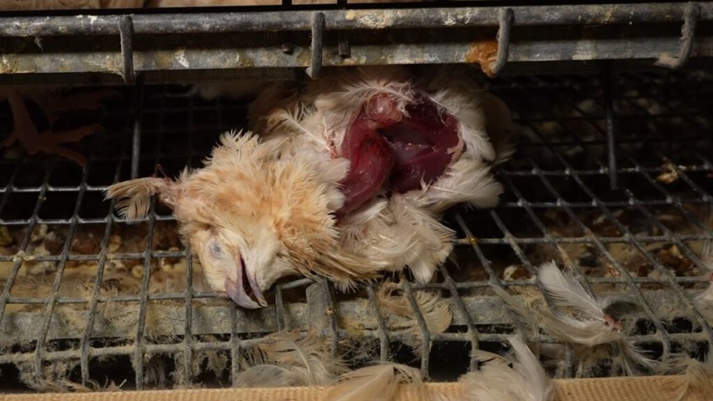 Un altre dels aspectes destacats és la situació dels ous, que apareixen en contacte directe amb brutícia, femtes i cadàvers en descomposició. Aquesta pràctica és incompatible amb la normativa europea d’higiene alimentària i podria comportar riscos per a la salut pública.