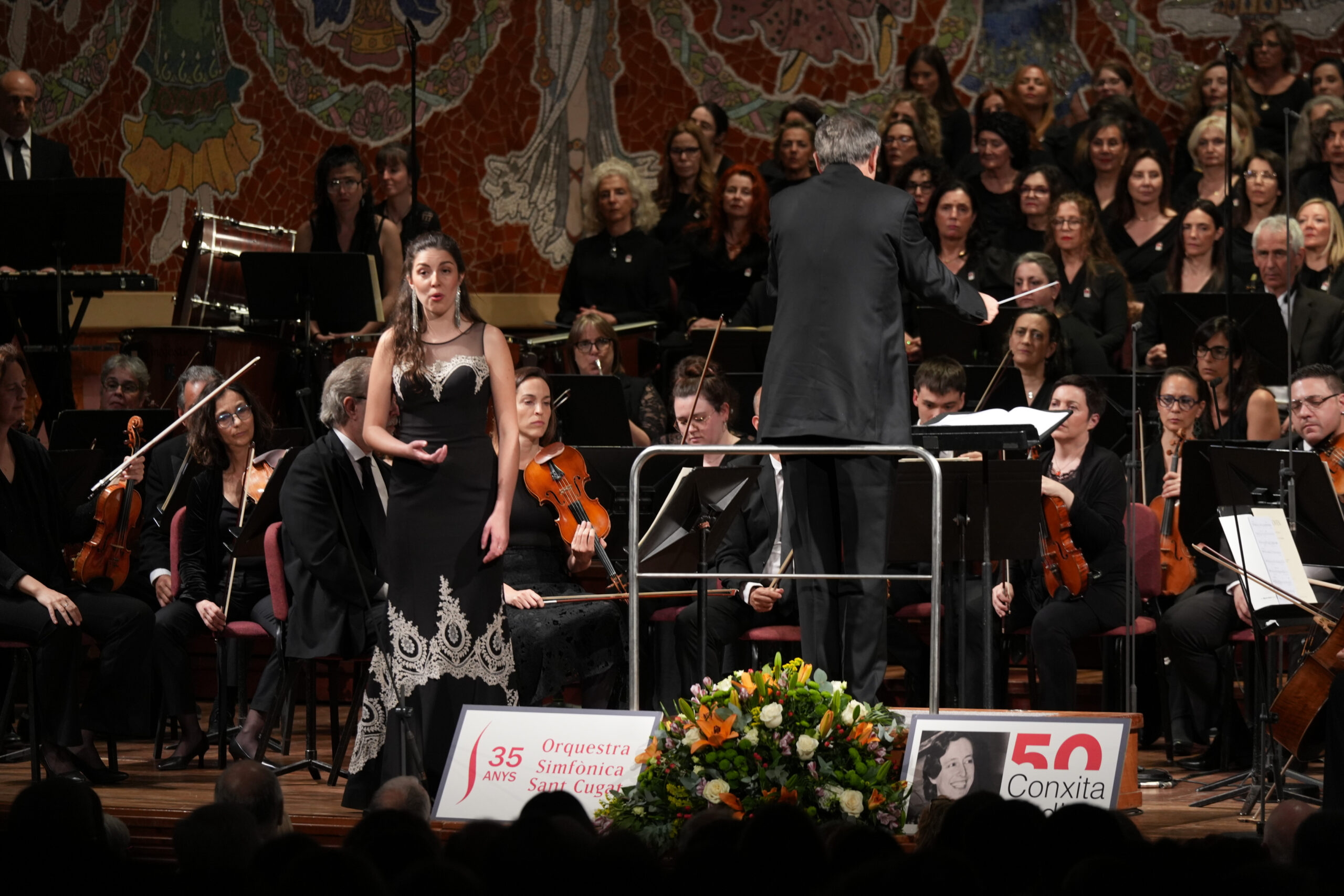 ACN Barcelona – L’Orquestra Simfònica de Sant Cugat ha recuperat aquest dimarts al Palau de la Música Catalana el concert de la ‘Novena simfonia’ de Beethoven, que assajaven Pau Casals i la soprano Conxita Badia el 1936 i que no van poder interpretar per l’esclat de la guerra civil. Amb direcció de Salvador Brotons, el concert forma part de l’Any Conxita Badia i és l’acte central de la gira de l’orquestra per nou ciutats del país. L’escenari ha comptat amb les veus de les sopranos Èlia Farreras-Cabero i Ulrike Haller, la contralt Anaïs Masllorens, el tenor Jordi Casanova i el baríton Joan Garcia, a més d’uns cors amb 180 cantants. A banda dels 50 anys de la mort de Badia, també s’ha commemorat els 150 anys del naixement de Casals.