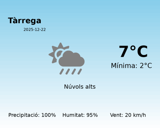 Predicció Meteorològica per a Tàrrega – 22 de Desembre de 2025