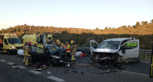 Tres ferits en un xoc frontal entre una furgoneta i un...
