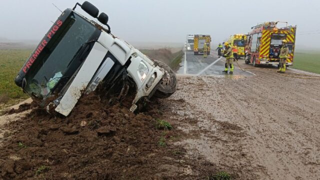 Tot i l’espectacularitat del bolcament, el conductor ha resultat il·lès i no ha calgut cap trasllat sanitari. El vehicle, de grans dimensions, ha quedat parcialment enfonsat al marge fangós de la carretera, tal com es pot veure a la imatge difosa pels serveis d’emergència.