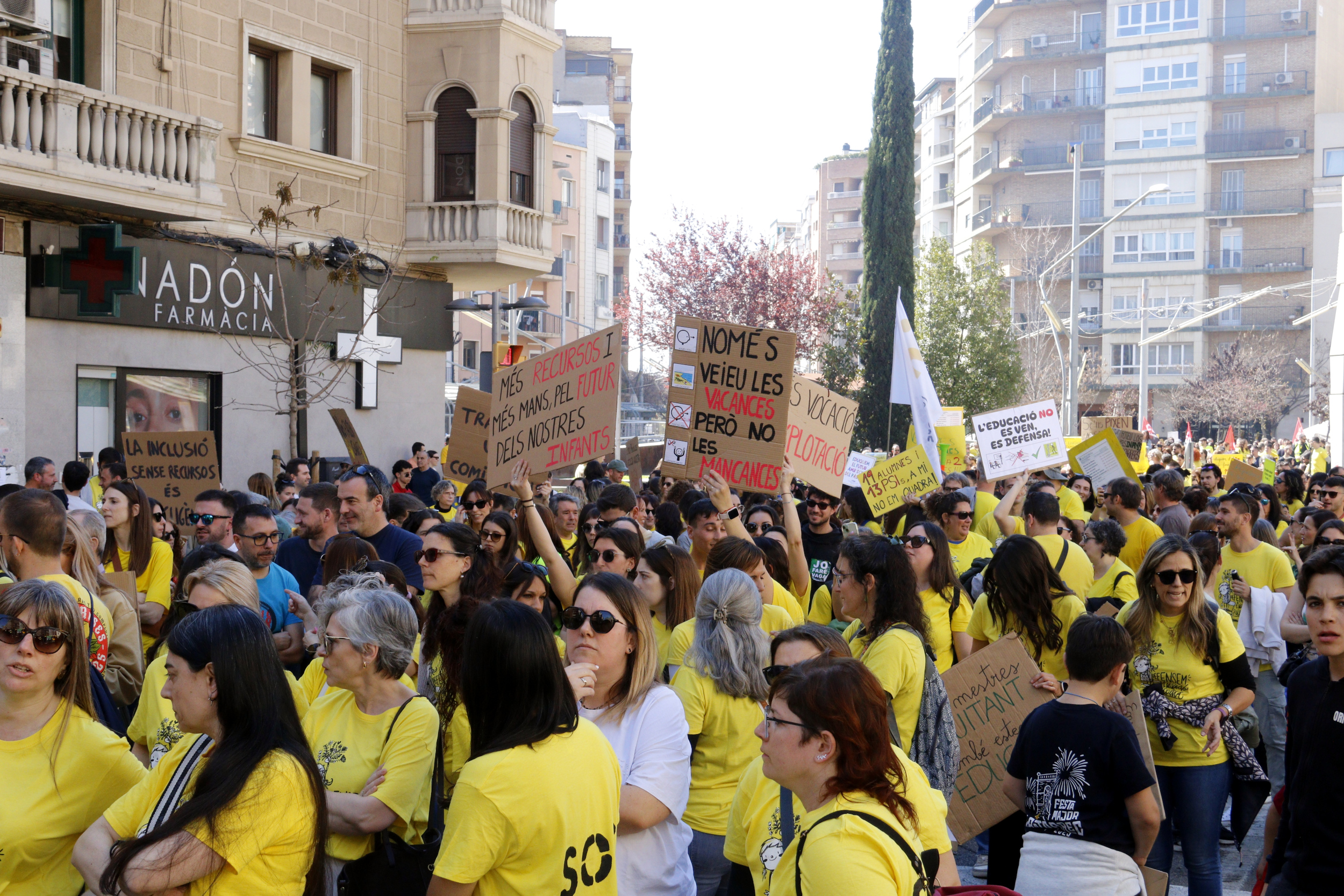 ACN Lleida – Milers de persones s’han manifestat aquest dimecres al migdia a la ciutat de Lleida en el tercer dia de vaga a l’educació. Unes 6.000 persones, segons la USTEC, i unes 3.000, segons la policia, han desfilat durant una hora i mitja entre la plaça Ricard Viñes i la plaça Sant Joan. Mestres, professors, personal laboral, famílies i alumnes han exigit més recursos i menys ràtios a les aules i millores salarials. A més, han mostrat pancartes i han cridat consignes contra l’acord assolit entre Educació i els sindicats UGT i CCOO. “És una errada històrica que no dona resposta a la reivindicació principal, que és la recuperació del nostre poder adquisitiu”, ha lamentat la portaveu d’USTEC a les comarques de Ponent, Rosa Aguilar.